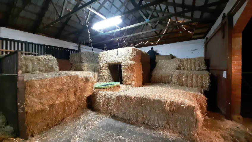Kinder lieben besonders die Strohburg im Pferdestall. Ist auch kein Wunder, schließlich kann man sich hier sogar an Regentagen prima austoben.