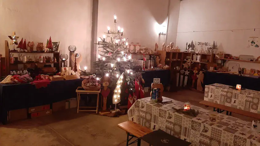 Mit einer Tasse Glühwein in der Hand kann man hier durch Weihnachtsartikel stöbern, letzte Geschenke finden und gleichzeitig die Arbeit der Lebenshilfe, einer Behindertenwerkstadt, unterstützen.